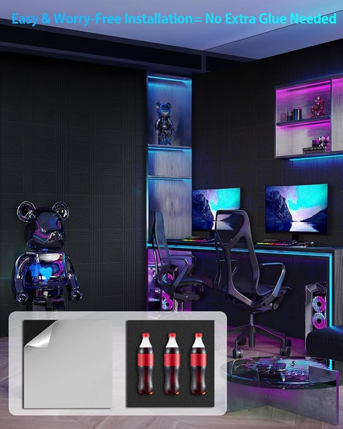 - Easy installation: Acoustic panels sound absorbing with self-adhesive backing allow for quick, tool-free installation on most smooth surfaces. Set up the sound proof panels by simply removing the protective film and securing them firmly to walls, or doors