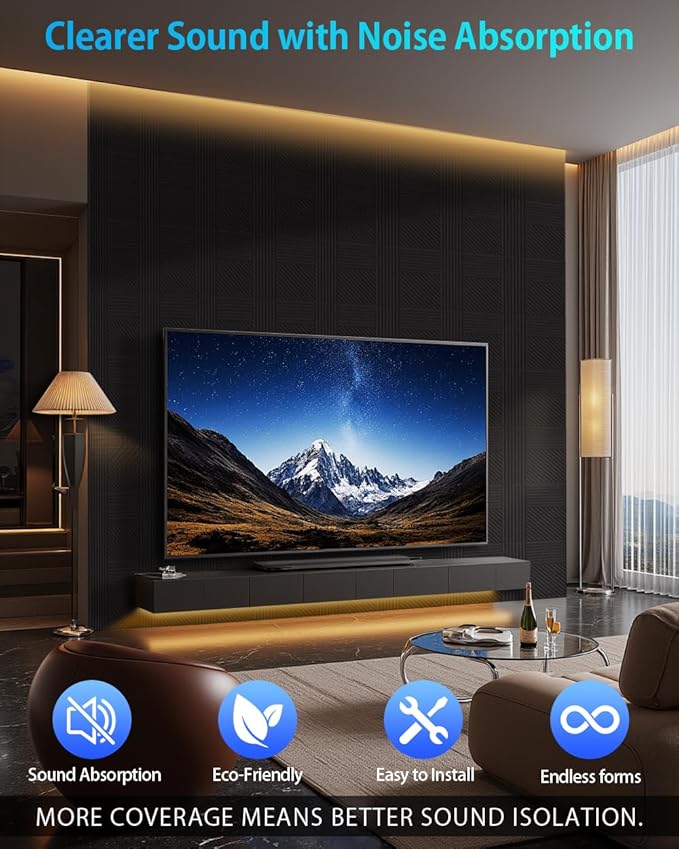 - Elevate Your Entertainment Space: Sound absorbing panels minimize reflections and reverb for crisp movie dialogue and intense game audio. Create an immersive home theater or gaming room experience with sound proofing panels for walls