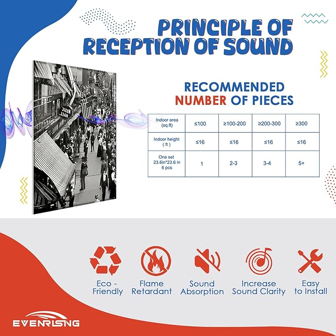 - 🖼️ [6 Pack Artistic Composition] Each decorative soundproof panels set includes six 23.6"x23.6" panels that form a cohesive visual artwork when arranged together. Ideal for users who want acoustic treatment without sacrificing style.