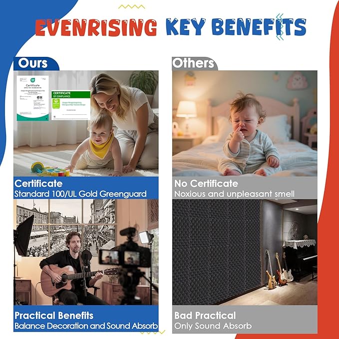 - ♻️ [Eco Material] Made from high-density polyester fiber, these acoustic panels provide better sound insulation than soundproofing foam panels. It features flame Retardant, wear resistance, and durability.