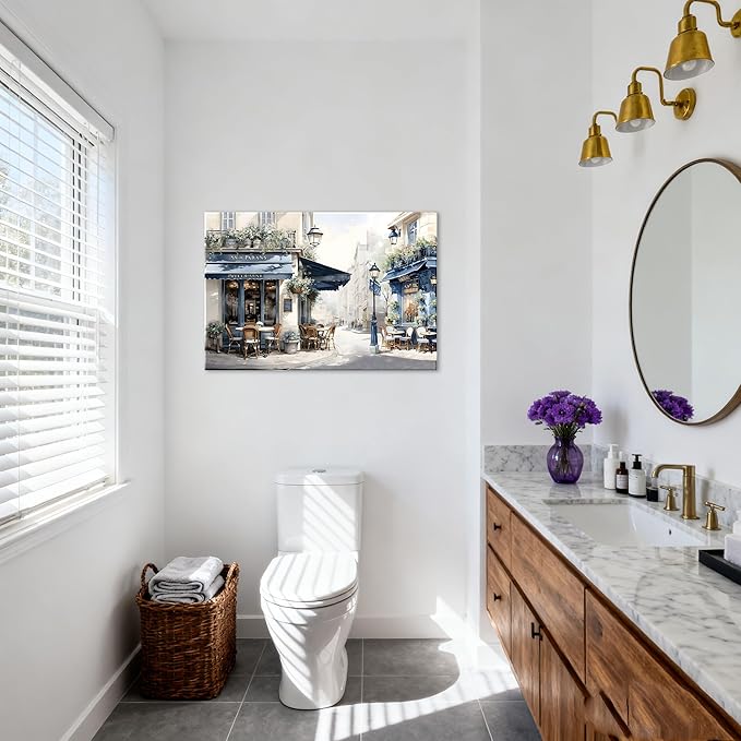 Modern Framed Street View Wall Art European Coffee Shop Canvas Print, Contemporary City Scene Painting, Vintage Cafe Artwork for Kitchen Dining Room Living Room, Bedroom Home Decor, Multi Size