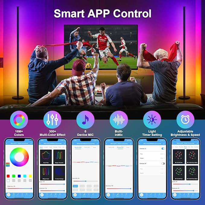63″H RGB Floor Lamp, LED Corner Lamp,16 Million DIY Colors, 68+ Scenes, Music Sync, App & Remote Control (2 Pack)