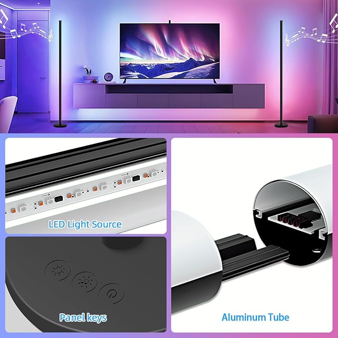 63″H RGB Floor Lamp, LED Corner Lamp,16 Million DIY Colors, 68+ Scenes, Music Sync, App & Remote Control (1 Pack)