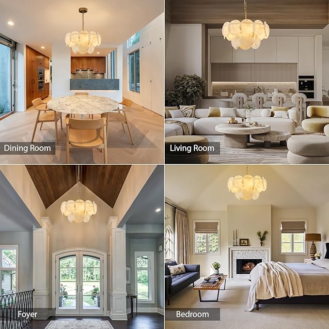 - 【Exquisite Natural Beauty】Crafted from 17 hand-selected alabaster marble pieces, each with its own organic veining, this round chandelier exudes timeless sophistication. The warm, diffused glow enhances any home decor, creating a stunning focal point for dining rooms, living spaces, or bedrooms.