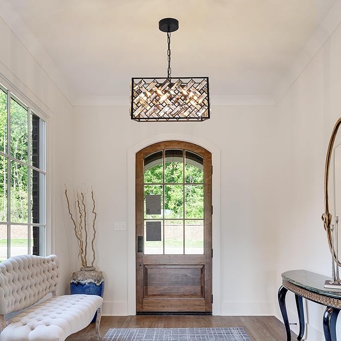 - 【Contemporary Elegance with Sparkling Crystals】Elevate your home's aesthetic with this contemporary chandelier. It combines a sleek black metal frame with luxurious K9 crystals, creating a stunning visual contrast. This dining room chandelier isn't just a light source; it's a statement piece that adds sophistication and warmth to your dining room and beyond.