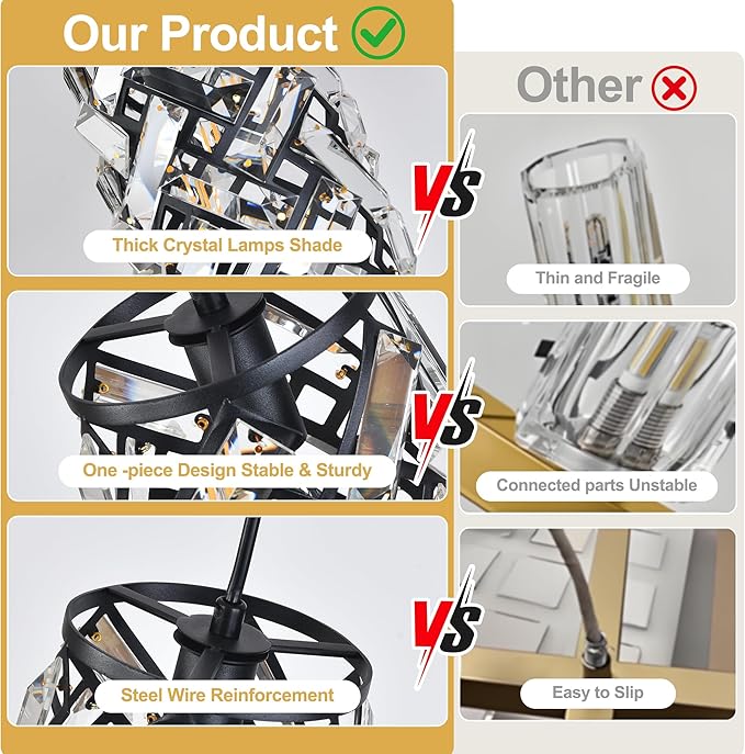 - 【Elegant Crystal & Metal Design】Crafted with a high-quality crystal shade and sturdy black matte black accessories rust proof, this pendant light offers a perfect blend of modern farmhouse charm and durability, elevating your home’s aesthetic with timeless elegance.