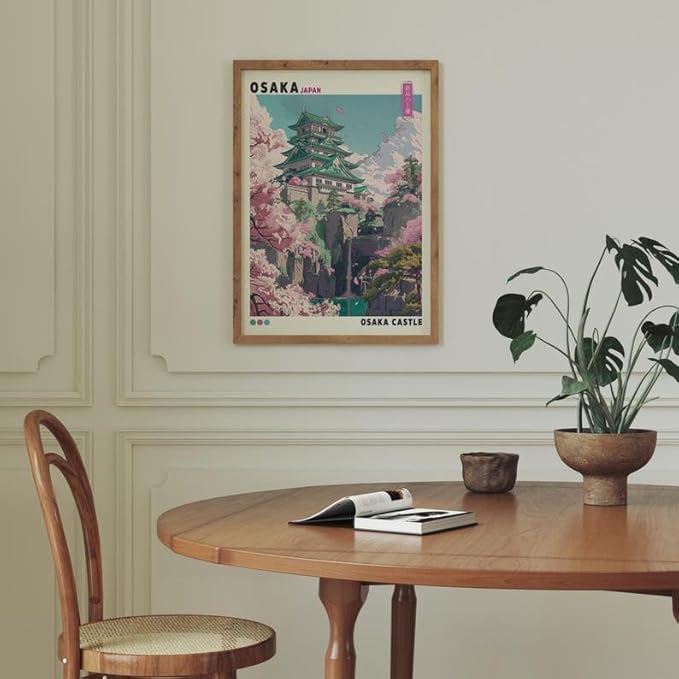 Osaka Castle Poster, Traditional Japanese Temple Wall Art Print with Cherry Blossoms, Japandi Asian Landscape Artwork, Vintage Decor for Living Room or Office (Unframed) (27x40)