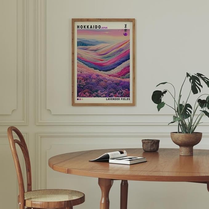Nationcog Hokkaido Lavender Fields Poster, Japanese Wall Art Print, Colorful Landscape Artwork, Japandi Asian Style Home Decor for Bedroom, Living Room or Modern Interior (Unframed) (12x18)