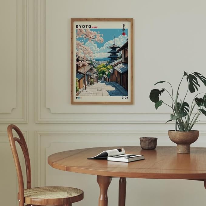 Kyoto Gion Poster, Japanese Street Wall Art Print with Cherry Blossoms and Pagoda, Traditional Japan Landscape, Japandi Decor for Bedroom or Living Room (Unframed) (27x40)