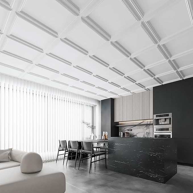 - Durable & Lightweight - The tiles are made from lightweight, yet durable PVC material, ideal for ceiling applications in kitchens, offices, and more