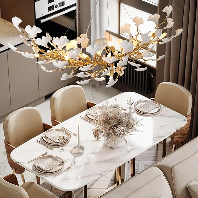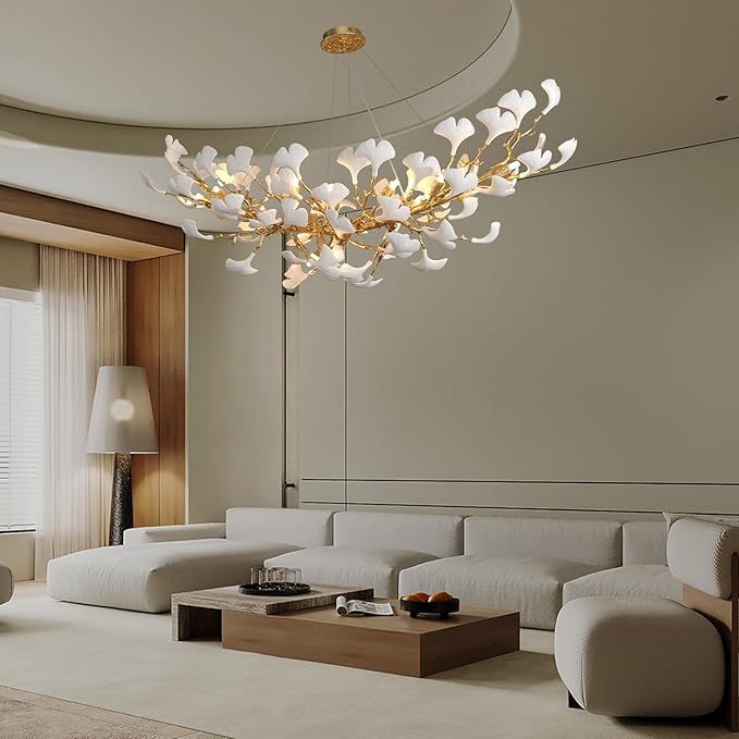- User-Friendly Chandelier Installation: Measuring 13.7 x 13.7 x 55 inches,our modern chandelier features an adjustable cable that extends from 0 to 92 inches, making installation easy.Crafted from aluminum alloy, each detachable branch is simple to assemble. Just hang the ceramic ginkgo leaves onto the branches.The ceiling canopy works with both flat and sloped ceilings for effortless setup.Take your time during installation,and you’ll soon have a stunning piece of modern art to enjoy.