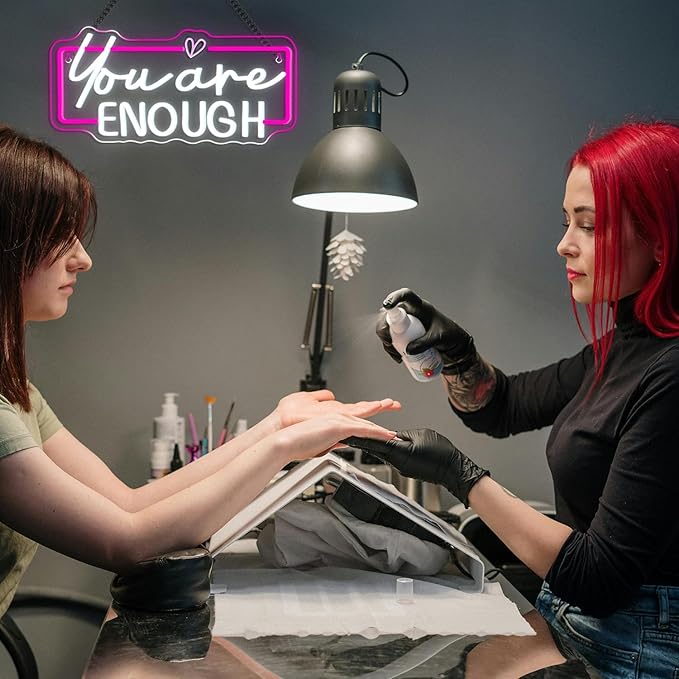 - Inspiring Motivational Message:The "You Are Enough" message on this neon sign offers daily inspiration and motivation.Perfect for college students or anyone needing a reminder of their worth,this LED light sign adds positivity to any space,from bedrooms to study areas