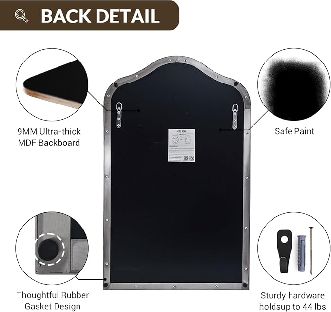 - Curved Top Design: The scalloped arch mirror with curved line is more interesting than monotone arches and creates a cozy atmosphere; Nickel irregular mirror can fit in bathroom, living room and so on, as well as by vanity or mantel