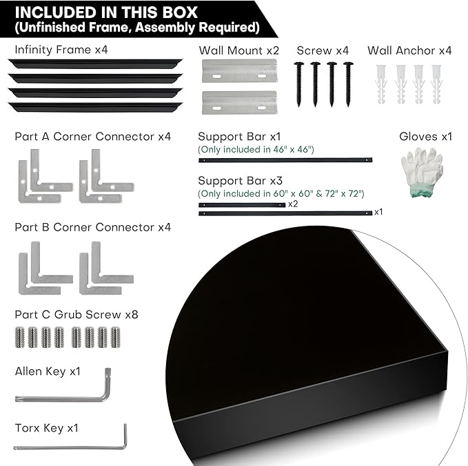 - Assembly Required: The frame print is unfinished frame and assembly required, but don¡¯t worry, it is easy to set up. We recommend two people for an easy, accurate setup, ensuring secure and stable hanging.