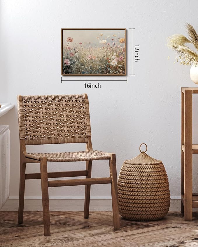 - Vintage Summer Wildflower Framed Wall Art, Boho Serene Vibe, Features a vintage wildflower field with soft muted tones, creating a tranquil, nature-inspired atmosphere—ideal for living rooms, bedrooms, or boho-themed spaces.