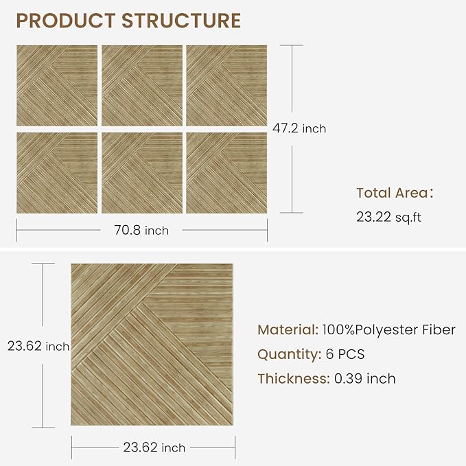 - Versatile for Any Space: Each acoustic wall panels size is 23.6" x 23.6"x 0.4". Perfect for home theaters, recording studios, offices and living rooms, these panels combine multiple panels to create a wall of sound proofing panels or easily cut them into different sizes without affecting performance. Say goodbye to distracting noise and enjoy a clearer, more enjoyable sound experience