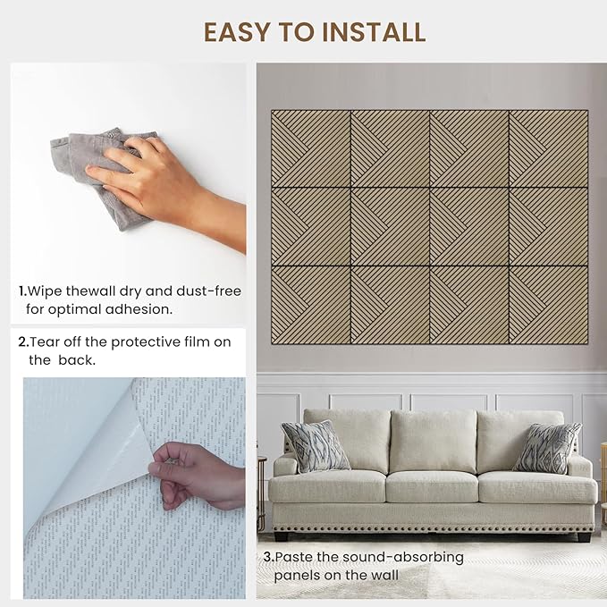• Easy Self-Adhesive Installation: Each sound absorbing panels comes with a strong self-adhesive backing. Just peel and stick the sound absorbing panels to the wall. No tools or professional help needed