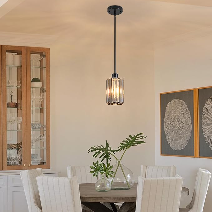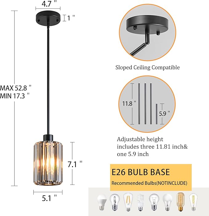 - ✨ Fully Customizable Height & Angle ✨ Design your perfect lighting solution! This innovative crystal pendant light offers dual adjustability. Easily modify the height from a compact 11.8" to an impressive 57" max using the included multiple extension stems (3x11.81", 1x5.9", 1x3.14"). Uniquely, you can also swivel the lamp head a full 360 degrees to direct light precisely where it's needed, eliminating shadows and providing perfect task lighting over your kitchen island or dining table.
