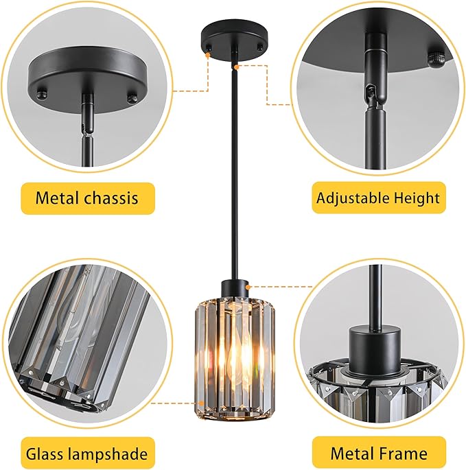 - 🎯 Sophisticated Design Meets Function 🎯 A blend of luxury and durability. The fixture boasts a sturdy metal chassis and frame, finished in your choice of sleek Silver, luxurious Gold, or modern Black. Paired with a clear glass lampshade and the sparkling K9 crystals, it creates a cohesive and elegant aesthetic. This light isn't just beautiful; it's a functional piece designed to provide customizable illumination for years to come.