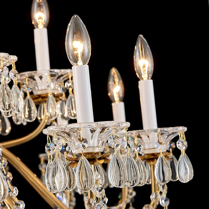 - Premium Quality Materials for Durability:This Crystal Chandelier is crafted with hand-selected, high-transparency K9 crystals that deliver brilliant refraction, paired with a thick, rust-resistant aluminum (brass-finish) frame. Sturdy and fade-proof, it's built to maintain its shine for years