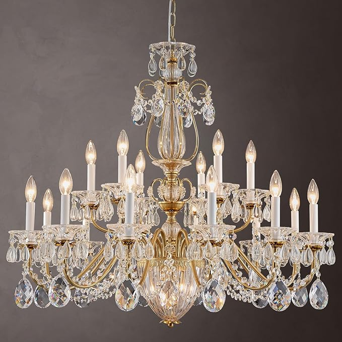 18 Lights Large Crystal Chandeliers for High Ceilings Brass Maria Theresa Chandelier Modern Chandelier Light Fixture for Foyer Entryway Staircase Hallway High Ceiling Living Room Dia 37 inch