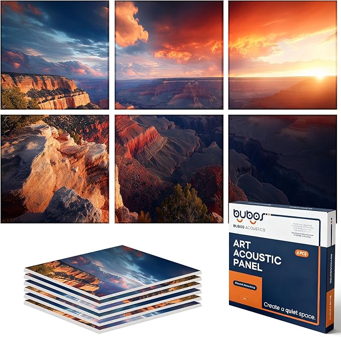 BUBOS 6 Pack Art Acoustic Panels Soundproof Wall Panel,70.8X47.2 Inches Large Sound Absorbing Panel,Self-Adhesive Decorative Acoustical Wall Panels, Acoustic Treatment for HomeïŒCanyon FireïŒ