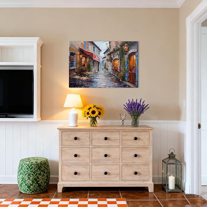 - Ready to Hang Frame: Equipped with a sturdy internal wooden frame for reliable stability, this wall art is designed for quick and easy installation. Please note: it comes with metal hooks (nails are not included), so you can mount it and enjoy the street view right away once you have prepared the nails.