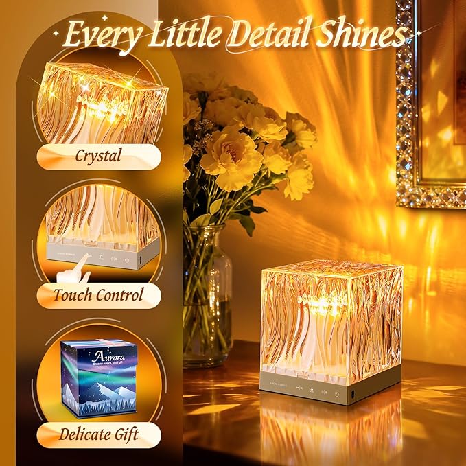 - 💝【HIFI 5.2 BLUETOOTH SPEAKER】The bedside lamp night light projector features a high quality 5.2 Bluetooth speaker to listen to yr favorite music, allowing u to relax from the music and soothing northern lights&RGB room lights.The room lights crystal light wall lights for living room is also especially suitable for dancing and partying,create a romantic or lively party atmosphere.The amazing sound quality of the night light projector will not disappoint,providing a listening experience like no other.crystal cube lights for ceiling projector light clearly projects and creates peaceful,relaxing, out of this world place!Everyone'll be attracted by the cool stuff night light projector aesthetic.