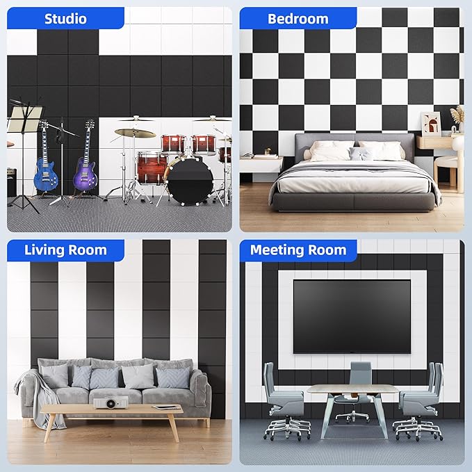 - 💪 High-Density Material: Power-packed with up to 14.35lb/ft³ of high-density material, our acoustic panels punch of curbing echoes and reverberations with ease. Not only do they bolster durability, but they also refine audio quality, enriching your audio experiences, whether it's a live broadcast, recording session, or immersive listening session.