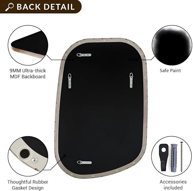 - Easy-Hang & Safe Delivery: ANDY STAR unique bathroom mirror features triple-layer protection—PE bag, poly foam, and sturdy master box—to ensure secure delivery. The asymmetrical mirror includes four reinforced D-ring hanging clips, enabling straightforward horizontal or vertical installation with included hardware