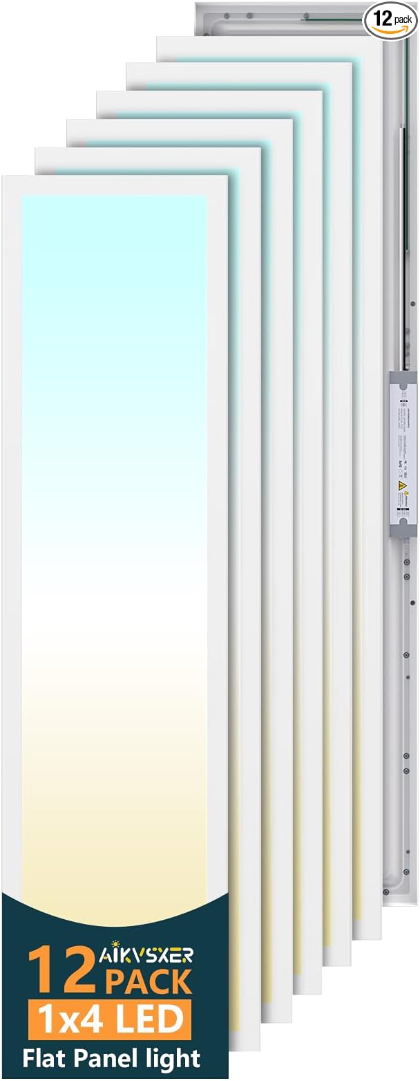 AIKVSXER 12 Pack 1x4 LED Flat Panel Light, 50W 5500LM Surface Mount Ceiling Fixture, 3CCT (3000K/4000K/5000K), Ultra-Thin 48In, 10-100% Triac Dimmable for Kitchen, Garage, Office, Basement