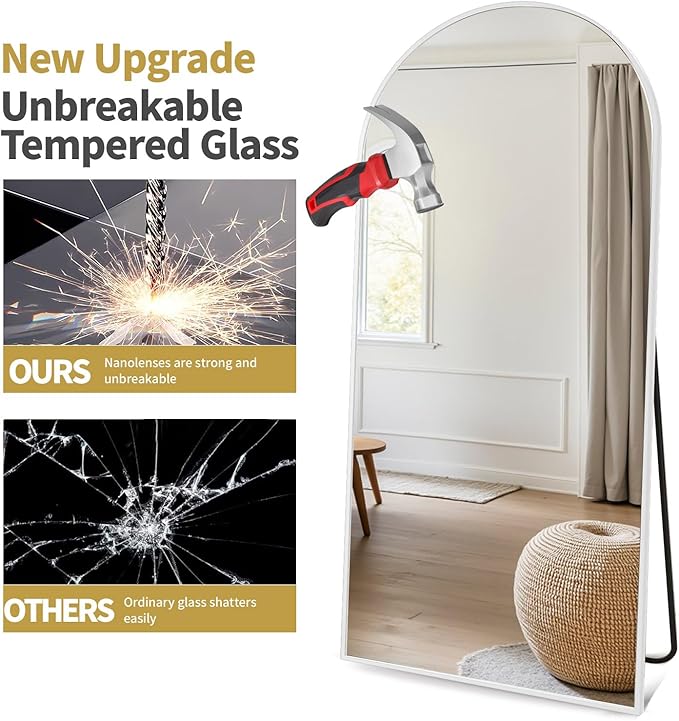 - Arched Top Mirror: The full length mirror is arched floor mirror 81 in x41 in,this mirror is perfect for creating a focal point in anytime, The sleek and sturdy frame is made of high quality allumium alloy,providing both durability and a touch of morden flair