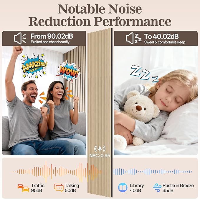 - Superior Acoustic Performance: Engineered to reduce echo and absorb unwanted noise, these wood wall panels improve sound quality in any room. Perfect for home theaters, offices, bedrooms, or living space, they create a quieter and more comfortable ambiance without sacrificing style.
