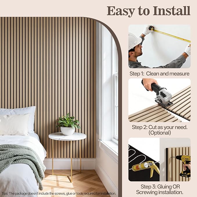 - Easy Installation: Each pack includes 4 panels measuring 94.4" × 12.6", covering up to 33 sq. ft. once installed. Panels can be easily cut to any size to fit your design needs. Mount them effortlessly using nails, super glue, or both. In just a short time, you’ll transform plain walls into a warm and inviting backdrop that enhances both comfort and style.