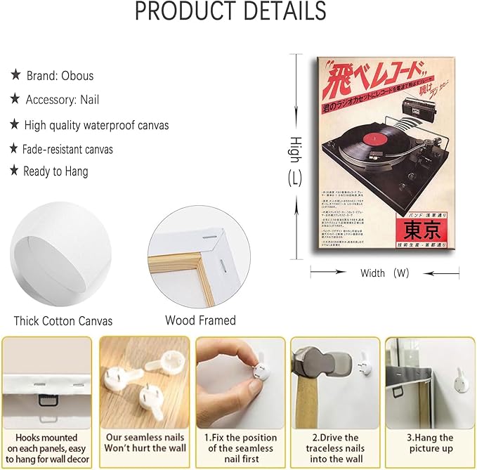 - Japanese Retro Music Wall Art :12x16 in, 16x24 in, the product comes with hanging accessories. A variety of sizes for you to choose, This is a fun and cute wall art decoration. Hang it on the wall and the room will become colorful