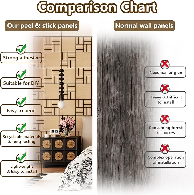• 10-Minute DIY Installation: Wall peel and stick panels without tools. 23.6 x 23.6-inch design covers walls seamlessly – Users can easily install it! 4lbs per slatted wall panels, Can be lifted and installed with one hand! Even a petite users tackling feature walls solo