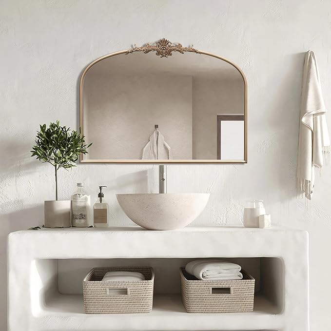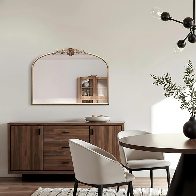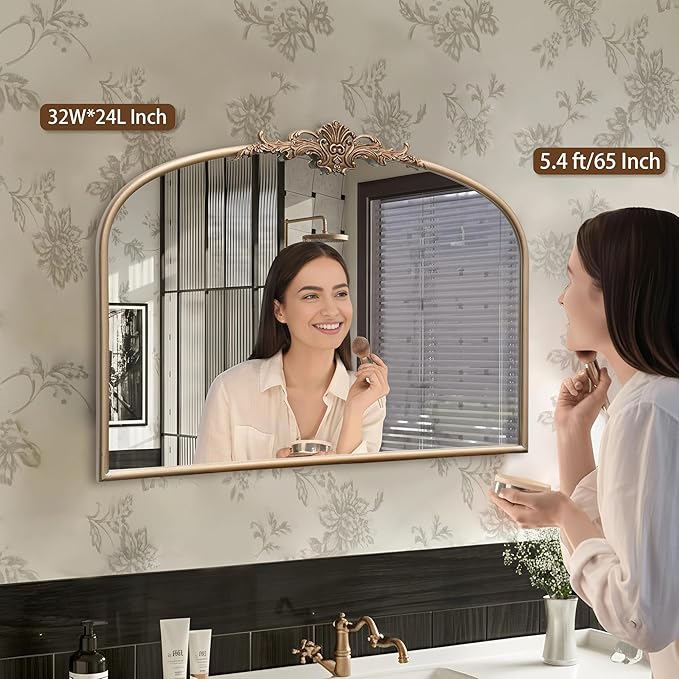- Exquisite French Aesthetic: Our Baroque arched mirror is available in a variety of sizes and colors. Beyond fireplaces and entryways, this mirror enhances bathrooms, dressing rooms, corridors, and even dining areas. Its ornate design adds depth and luxury to any space, making it a favorite among homeowners and stylists alike.