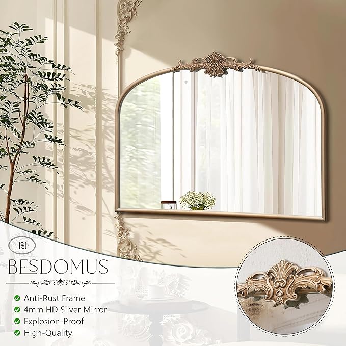 - Medieval French Furniture: Ideal for fashion-conscious women and young couples, this vintage arched mirror elevates your entryway or fireplace with its baroque charm. Tired of dull, poorly reflective mirrors that fail to make a statement? Besdomus delivers crystal-clear reflection and artisanal elegance.