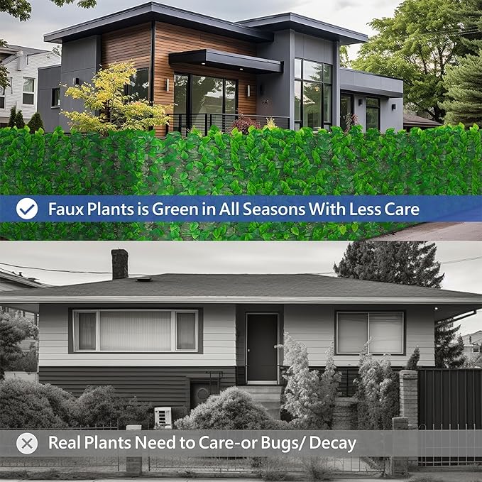 - [Durable & Weather-Resistant Design] Constructed from high-quality, UV-resistant materials, this ivy fence is built to last. It can endure various weather conditions, from sunny days to rainy seasons, without fading, cracking, or losing its shape. Enjoy a perpetually fresh and green appearance throughout the seasons, making it a cost-effective and long-lasting landscaping solution.