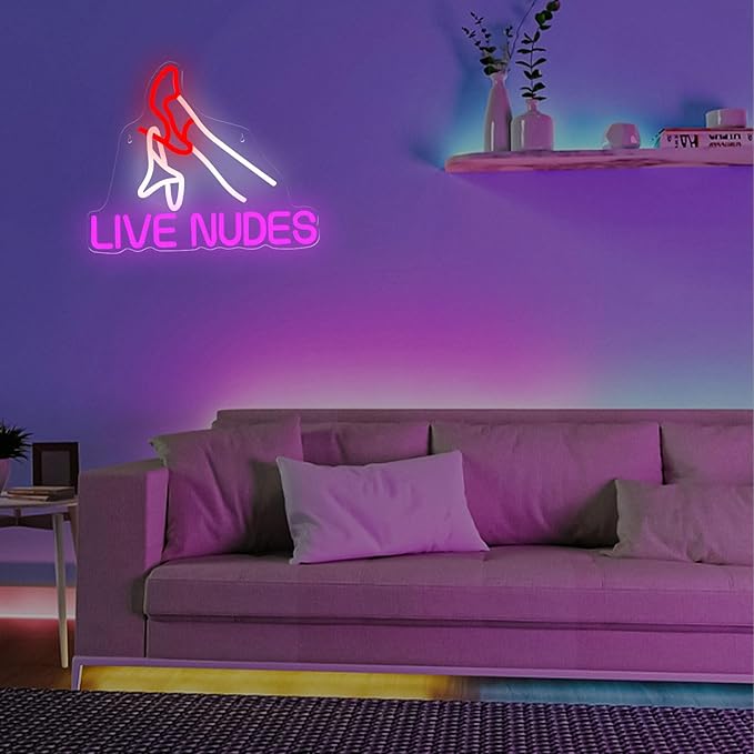 - Lady Neon Sign: This "LIVE NUDES" neon sign features a playful leg and high heel design that instantly grabs attention. Light up your room with this LED lighted woman's body, to power the impact and emotion atmosphere for your important event.