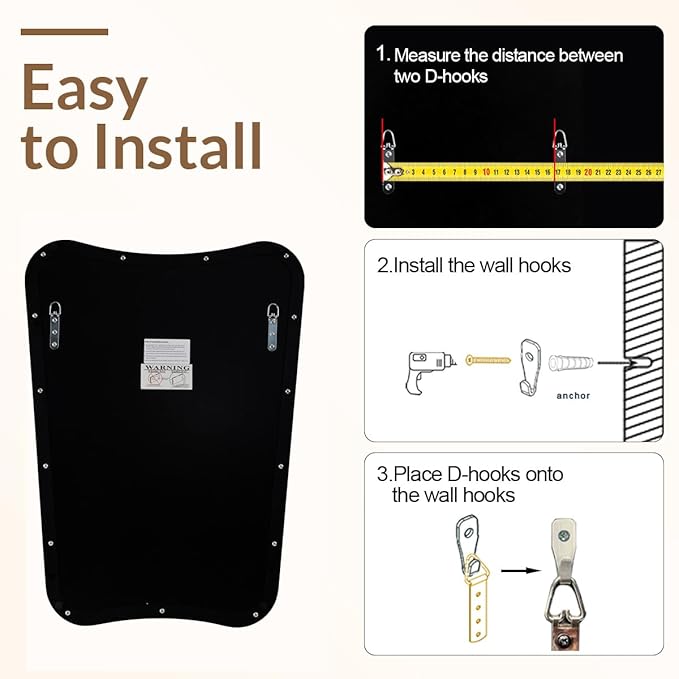 - 【Easy & Fast Installation】: Equipped with 2 pre-installed D-rings, all necessary hardware, and clear instructions—setup is hassle-free. If any hardware is missing, just reach out for prompt help. At 19.2 lbs, we recommend 2 people for installing this heavy antique bronze irregular mirror