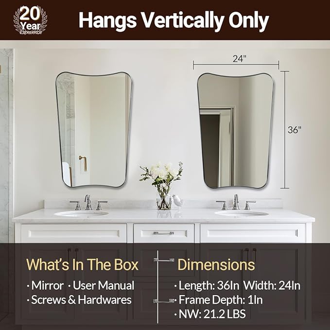 - 【Easy & Fast Installation】: Equipped with 2 pre-installed D-rings, all necessary hardware, and clear instructions—setup is hassle-free. If any hardware is missing, just reach out for prompt help. At 21.2 lbs, we recommend 2 people for installing this heavy antique bronze irregular mirror