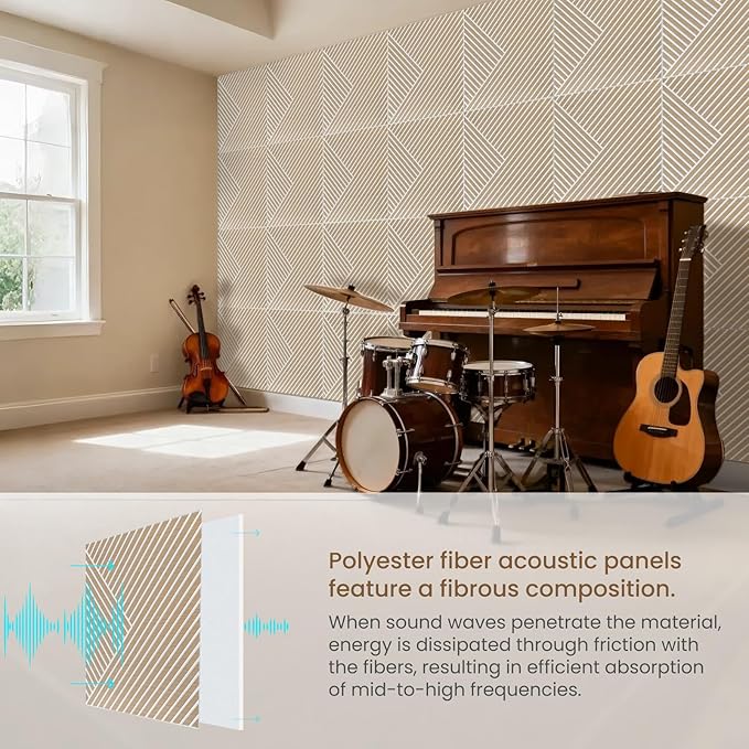 - Versatile for Any Space: Each acoustic wall panels size is 23.6" x 23.6"x 0.4". Perfect for home theaters, recording studios, offices and living rooms, these panels combine multiple panels to create a wall of sound proofing panels or easily cut them into different sizes without affecting performance. Say goodbye to distracting noise and enjoy a clearer, more enjoyable sound experience