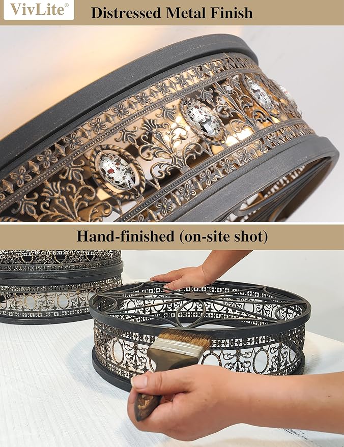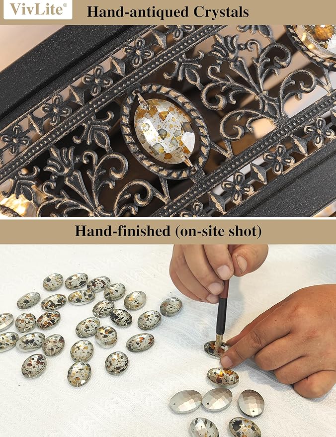 - ๐๐๐ฎ๐ฅ๐ฉ๐ญ๐ฎ๐ซ๐๐ฅ ๐๐๐ญ๐ญ๐ข๐๐๐ฐ๐จ๐ซ๐ค & ๐๐ง๐ญ๐ข๐ช๐ฎ๐ ๐๐ซ๐ฒ๐ฌ๐ญ๐๐ฅ ๐๐ฆ๐๐๐ฅ๐ฅ๐ข๐ฌ๐ก๐ฆ๐๐ง๐ญ๐ฌ๏ผOversized floral metalwork and aged crystals provide depth and warm illumination. Every visible elementโincluding the bottom finialโis hand-finished for a museum-grade decorative presence.