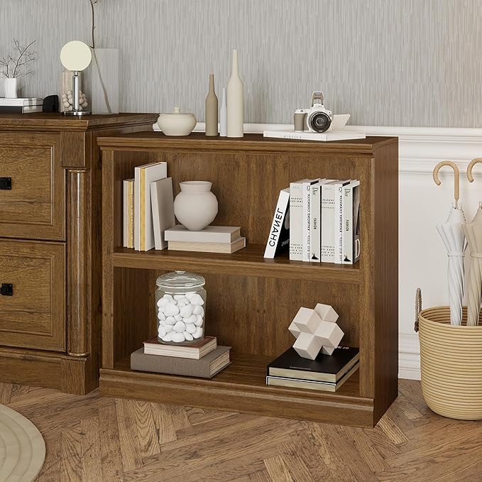 Bookcase, 2 Tiers S Bookshelf Open Storage Organization, Floor Standing Indoor Furniture Book Case for Library Office Living Room Bedroom, Vintage Oak - 2 Tier