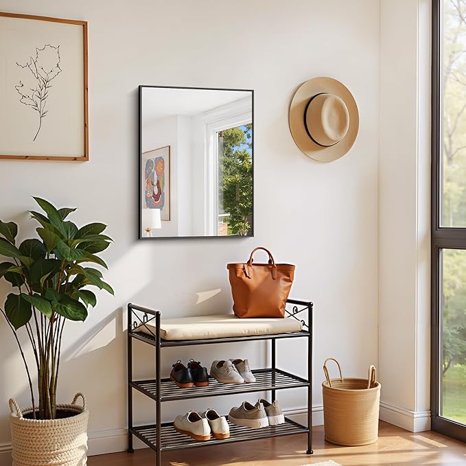 Black Bathroom Mirror for Wall, 18x24 Inch Rectangle with Metal Frame, Modern Vanity for Bathroom Living Room, Entryway Hangs Horizontal or Vertical