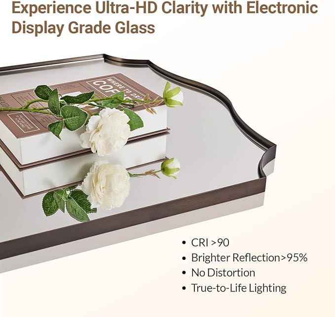 - 【High-Definition Clarity】: This large bathroom mirror for wall features a crystal-clear reflection using high-quality silver glass, offering true-to-life images without distortion. The robust construction of our antique bronze mirror ensures its longevity, while the easy-to-clean surface keeps your reflection pristine