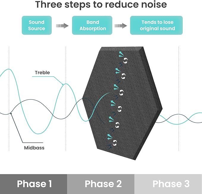 24 Pack Hexagon Acoustic Panels, 12"X10"X 0.4"Black, White and Gray Hexagon Self Adhesive Soundproof Wall Panels, High-Density Sound Absorbing Panels, Acoustic Treatment Panels