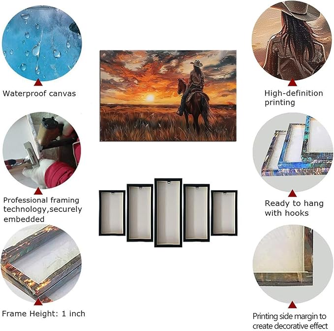 - 💝Hang Easily: High quality and high definition print, each panel of western cowboy canvas picture already stretched on solid wooden frames, gallery wrapped, ready to hang.