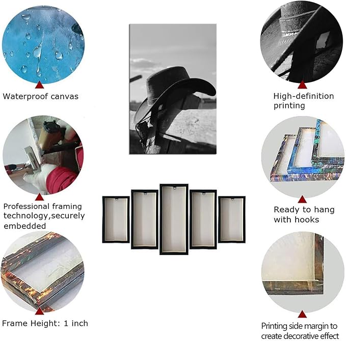Cowboy Hats Pictures Wall Art for Bedroom Living Room Office Home Decortion Prints Framed(18L" x 24W")